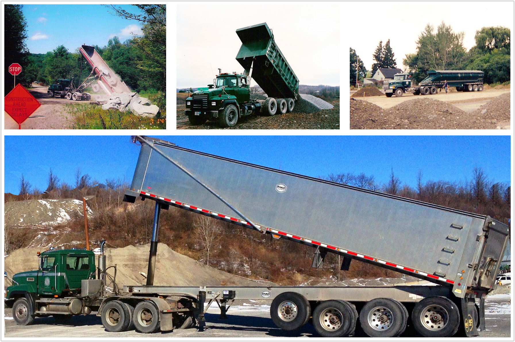 Cobleskill Stone Products has a fleet of 40 trucks ranging from Tri-axles, Flowboys, Dumpasaurus, Aluminum Dump Trailers and Lowboys. Our fleet is regularly maintained by our in-house mechanics which allows us to deliver your product in a timely and efficient fashion and to nearly any location. Our drivers are experienced in delivering to site specific projects and stockpiles, as well as working in front of pavers and milling machines and excavation projects.